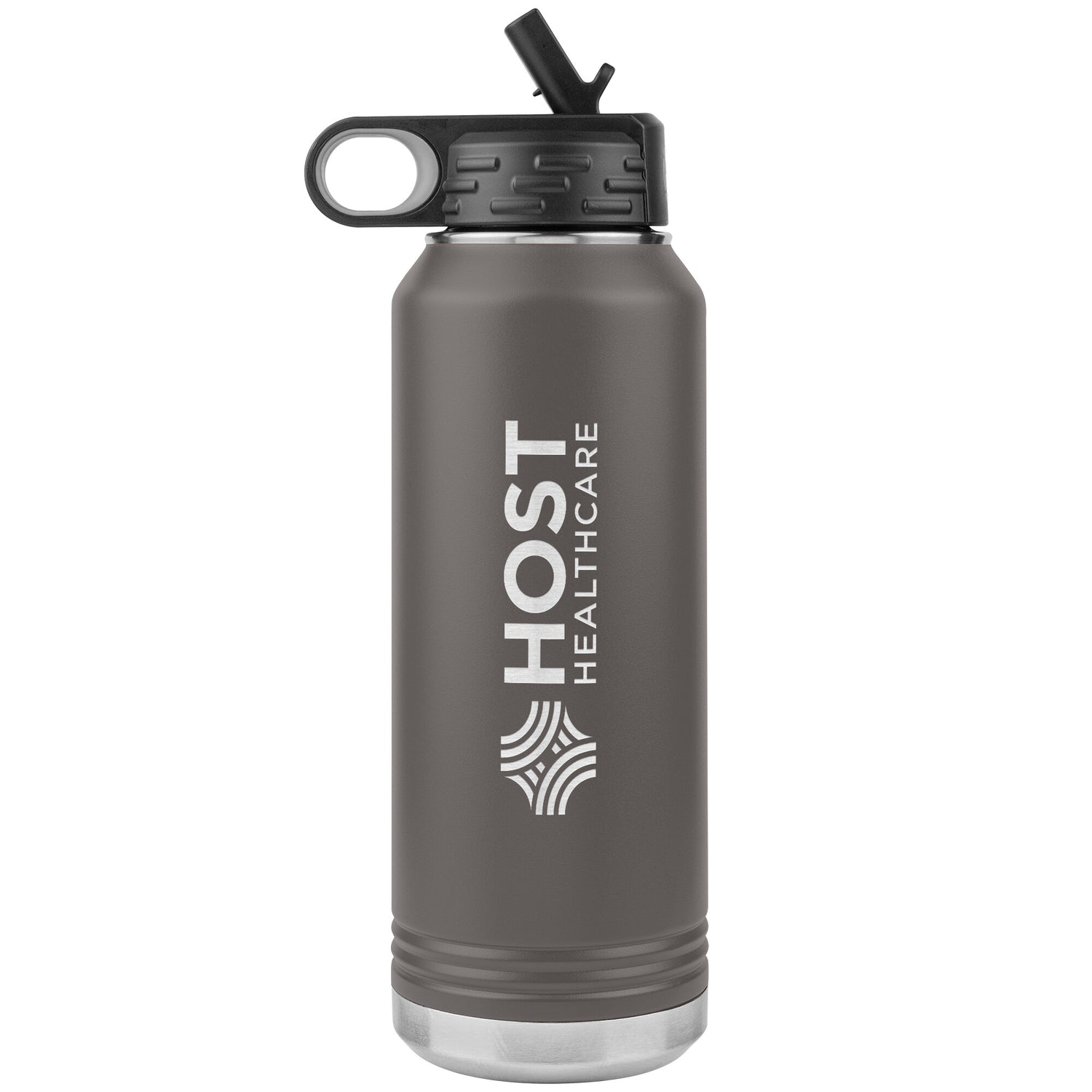 32oz. Water Bottle Tumblers feature stainless steel double-wall construction, vacuum insulated for 2x cold and heat retention compared to glass or plastic containers. The removable lid has an easy flip top with interior straw for convenience. The soft rubber holder along with textured sweat-free powdercoat make this water bottle the gold standard for drinks on the go!